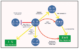 Server采用智能最佳成本路由選擇方法,更靈活的利用IDD電話,IP電話,專線電話,Internet網(wǎng)絡(luò)發(fā)送傳真,從而實現(xiàn)在達到滿意的傳真效果的同時降低通信成本。TraFax