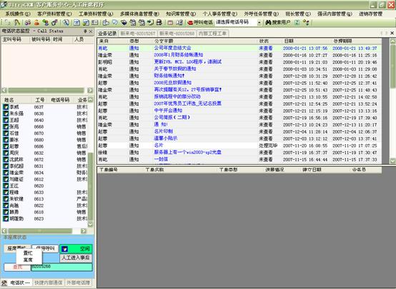 在個(gè)人事務(wù)管理中,坐席人員方便的設(shè)定工作計(jì)劃安排,查詢呼叫記錄(呼入、呼出、呼入失。瞻l(fā)個(gè)人Email、短信息、個(gè)人公文以及進(jìn)行公文流轉(zhuǎn)等。