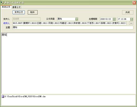 內(nèi)部公文流轉(zhuǎn)實(shí)現(xiàn)了座席員(組)之間快速、高效的公文、通知、消息、文件傳送功能,如圖24和25所示: