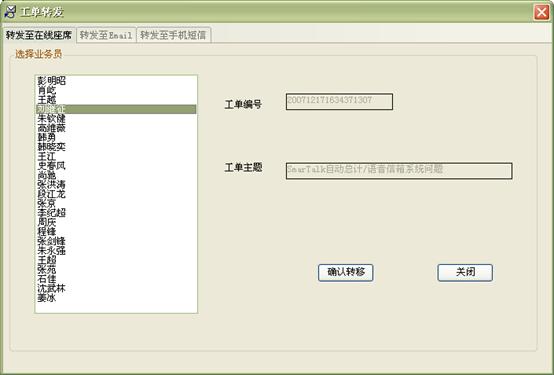 3) 工作流閉環(huán)、客戶通話歷史,客戶聯(lián)系歷史,工單流轉(zhuǎn):工作流系統(tǒng)是通過工單實(shí)現(xiàn)各工作流環(huán)節(jié)的聯(lián)系以及工作流的定義管理,工作流狀態(tài)查詢、更改的。操作員可根據(jù)用戶的不同業(yè)務(wù)請(qǐng)求,建立相應(yīng)的工單記錄,并對(duì)該事后處理過程進(jìn)行跟蹤;也可對(duì)要處理的事務(wù)形成工單轉(zhuǎn)給相應(yīng)的操作員,并跟蹤該工單的處理過程;可定期提示操作員處理要過期的工單,以提高服務(wù)質(zhì)量;每次處理過程都會(huì)有詳細(xì)的記錄,以便統(tǒng)計(jì)查詢 。如圖8、9、10:
