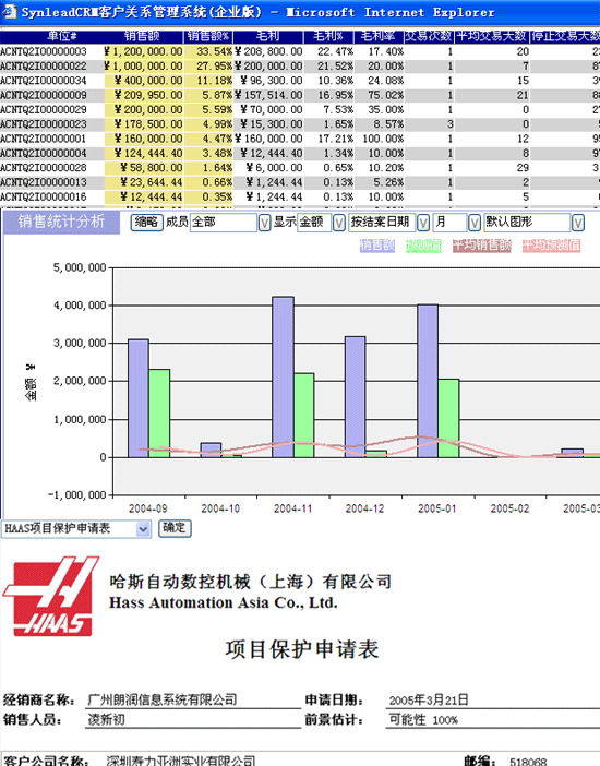 ,"可擴展樣式語言轉(zhuǎn)換")來制作。這種語言也是通用的,并且容易掌握。為了獲得更強大的功能,XSLT允許插入Javascript等一些其他語言或者插件。在這些語言的操縱下,結(jié)果樹的輸出形式是非常靈活的。下圖是國內(nèi)知名的CRM軟件--SynleadCRM企業(yè)版將其XML數(shù)據(jù)源轉(zhuǎn)換成的一些報表和圖表: