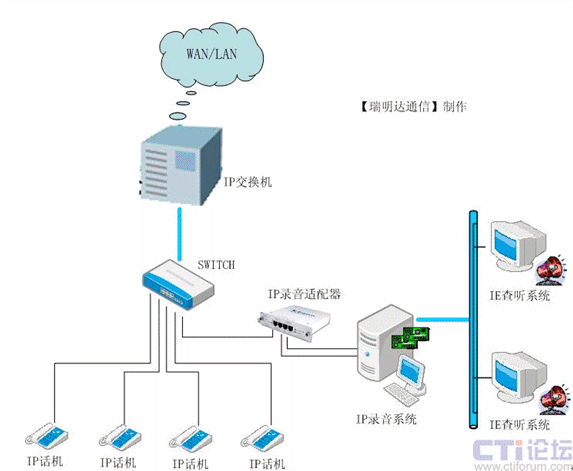 【瑞明達(dá)通信】是國(guó)內(nèi)較早從事專業(yè)計(jì)算機(jī)電話語(yǔ)音系統(tǒng)(CTI)產(chǎn)品的開發(fā)商, 在客戶交互式解決方案行業(yè)中有十多年的從業(yè)經(jīng)驗(yàn),具備雄厚的語(yǔ)音產(chǎn)品開發(fā)能力。最近幾年,基于 IP 的下一代通信,正在以前所未有的速度改變著全世界的通信架構(gòu)和商業(yè)格局!救鹈鬟_(dá)通信】作為錄音技術(shù)的領(lǐng)先廠商,就已經(jīng)具有前瞻性的潛心致力于基于IP通訊線路的多媒體記錄解決方案的研發(fā),RMD_VoIPlog錄音系統(tǒng)是由【瑞明達(dá)通信】自行開發(fā)研制的新一代IP錄音系統(tǒng)。該系統(tǒng)在記錄VoIP語(yǔ)音的同時(shí),所需的語(yǔ)音資源通過(guò)軟件方式或硬件平臺(tái)直接由網(wǎng)絡(luò)中的RTP等數(shù)據(jù)流獲取,無(wú)須和座席分機(jī)或中繼線進(jìn)行并接,因此是一種軟件/硬件分別實(shí)現(xiàn)的錄音系統(tǒng),是真正的基于IP 的錄音解決方案。RMD_VoIPlog錄音系統(tǒng),是以數(shù)字記錄、數(shù)據(jù)庫(kù)查詢、光盤存儲(chǔ)等先進(jìn)技術(shù)為手段,為通話語(yǔ)音的錄制、管理提供了一種先進(jìn)、科學(xué)而又行之有效的方法。二、RMD_VoIPlog錄音系統(tǒng)運(yùn)行環(huán)境