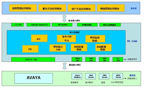 商路通公司采用平臺化、模塊化以及分層的設(shè)計思想,在體系結(jié)構(gòu)上分為通信層、中間層、業(yè)務(wù)層。這樣的體系結(jié)構(gòu),在實現(xiàn)多種硬件設(shè)備、多種媒體支持以及建設(shè)不同規(guī)模、組網(wǎng)方式的呼叫中心應(yīng)用時體現(xiàn)出了靈活、便捷、平滑過渡等諸多優(yōu)勢。