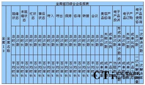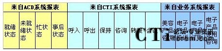 c)如果想對這個(gè)組的坐席進(jìn)行整體的坐席狀態(tài)進(jìn)行考核,以便確定工作負(fù)荷、績效考核,形成每天、每月、每季度、每年、按組、按技能,平均、總計(jì)、總合、最大、最小數(shù)據(jù)比較的表格、圖表,對不起要么你放棄這個(gè)想法,要么你重新開發(fā)軟件進(jìn)行計(jì)算;