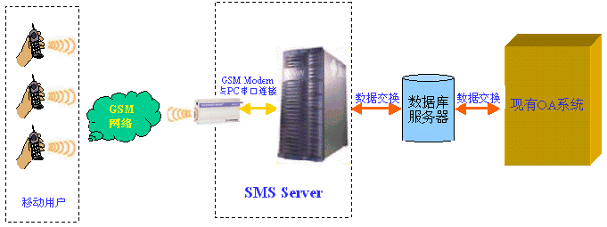 短信收發(fā)服務(wù)器是通過數(shù)據(jù)交換的方式與您的系統(tǒng)進(jìn)行連接,目前支持?jǐn)?shù)據(jù)庫的交換方式,可以通過Oralce、MS SQL SERVER 、MS ACCESS等關(guān)系型數(shù)據(jù)庫和現(xiàn)有系統(tǒng)進(jìn)行數(shù)據(jù)交換。