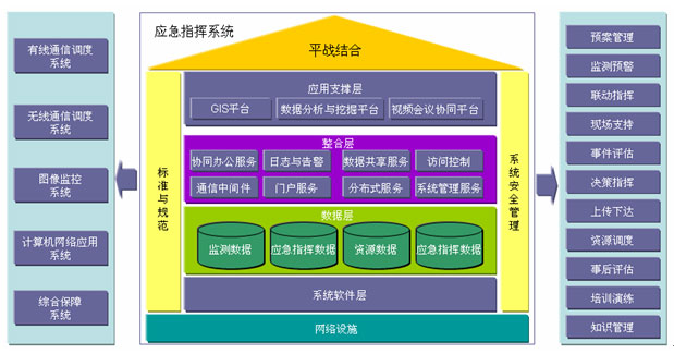 應(yīng)急基礎(chǔ)平臺是基于先進(jìn)信息技術(shù)、網(wǎng)絡(luò)技術(shù)、GIS技術(shù)、通信技術(shù)和應(yīng)急信息資源基礎(chǔ)上的,充分利用現(xiàn)有資源,依托政府系統(tǒng)電子政務(wù)建設(shè),建立統(tǒng)一應(yīng)急指揮網(wǎng)絡(luò)平臺,實(shí)現(xiàn)緊急事件報(bào)警的統(tǒng)一接入與交換。