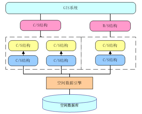 GIS應(yīng)用劃分成基于C/S結(jié)構(gòu)的應(yīng)用和基于B/S結(jié)構(gòu)的應(yīng)用兩種。前一種結(jié)構(gòu)適用于實(shí)現(xiàn)數(shù)據(jù)的采集、入庫、編輯和復(fù)雜的空間分析、專題制圖等應(yīng)用,主要是面向數(shù)據(jù)維護(hù)人員和專業(yè)分析人員使用的,以及為領(lǐng)導(dǎo)和專家提供輔助決策和分析之用;而后一種結(jié)構(gòu)比較適合于實(shí)現(xiàn)簡單的地圖發(fā)布、空間查詢等應(yīng)用,主要面向的是廣大的Internet用戶。由于這兩種結(jié)構(gòu)各有優(yōu)缺點(diǎn),而從指揮中心的總體角度來看,兩種結(jié)構(gòu)的應(yīng)用都是不可缺少的。系統(tǒng)的總體結(jié)構(gòu)將是一個(gè)同時(shí)包含了C/S和B/S兩種結(jié)構(gòu)的混合型、綜合型結(jié)構(gòu)。系統(tǒng)結(jié)構(gòu)如下: