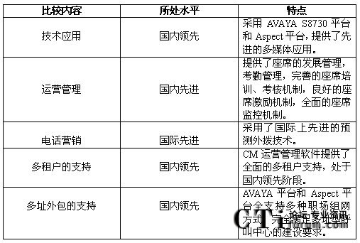 綜合比較,深圳電信商業(yè)呼叫中心的建設處于國內(nèi)領先階段,有些技術(shù)甚至處于國際先進的水平。比較如下:
