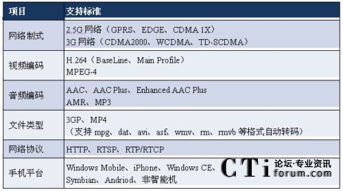 不同的終端之間處理能力有很大區(qū)別,所支持的協(xié)議也各不相同,流媒體業(yè)務(wù)必須支持所有類(lèi)型的流媒體終端并具備以下功能: