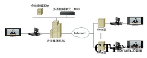 科達(dá)視頻會(huì)議解決方案就部署而言非常簡(jiǎn)單:為海集團(tuán)深圳總部的機(jī)房架設(shè)一臺(tái)多點(diǎn)控制單元(MCU),總部會(huì)議室、各分公司的會(huì)議室則各部署一套視頻會(huì)議終端?偛繋挒10/100M,各地分公司均通過(guò)普通ADSL接入。系統(tǒng)拓?fù)鋱D如下: