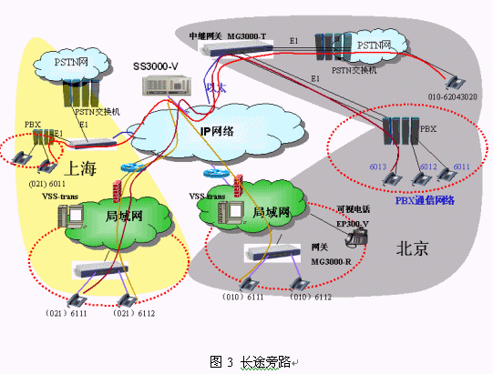 我們建設(shè)mindSYS系統(tǒng)的時候基本上不改變原來PBX的布線和配置,PBX原來的數(shù)字中繼直接連接到運(yùn)營商的程控交換機(jī),我們現(xiàn)在只是將PBX的數(shù)字中繼連接到中繼網(wǎng)關(guān)MG3000-T。PBX通信系統(tǒng)的電話完全沒有改變,還使用原來的電話號碼,打分機(jī)直接撥小號,打外線先撥0。mindSYS系統(tǒng)下的電話使用方式也完全一樣,對用戶來說就是一套系統(tǒng)。如北京的6011可以直接撥打6111,6111用戶也可以直接撥打6011,6111打外線先撥0,如062043020。北京的用戶呼叫異地用戶需要撥打完整號碼(大號),如北京的6011用戶撥0216111就可以接通上海的用戶,反之亦然。mindSYS系統(tǒng)的電話(圖2的所有電話)之間通話都免費(fèi)。這樣我們的行業(yè)用戶可以既不改變原來的使用習(xí)慣,又能夠靈活的規(guī)劃各地的電話號碼來完成一個大型的跨地域的電話系統(tǒng)。