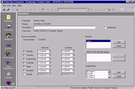 WFMS允許管理者通過設(shè)定技能參數(shù)和可能的工作量來創(chuàng)建和假設(shè)出不同的排班表。把上面的設(shè)定和特殊日期的工作量聯(lián)系起來,加以WFMS的附加工具,管理者將迅速的對建立的排班進(jìn)行評估。呼叫組可以根據(jù)預(yù)測的工作量進(jìn)行調(diào)整,員工也可能被調(diào)到一個特定的呼叫組回答特定的問題。所以兼職員工輔以全職員工,這是最好的組合方式,可以實現(xiàn)預(yù)測出的每一個排班方式。而且WFMS會不斷地從ACD中提取數(shù)據(jù),不斷地預(yù)測,找到最完美的平衡點。這種方式將使技能組的設(shè)置和人員排班的工作更加簡單,做的更好。