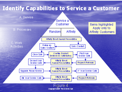 圖4中的全部圖片推翻了所需的服務(wù)客戶的行動。這兩種方法提供了不同的過程以達(dá)到這個(gè)結(jié)果。在這個(gè)部分的底部,C. 工作行動,這些方格體現(xiàn)了頂端開始的行動,和經(jīng)歷之前描述的獲得和保持客戶的過程。