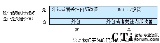 如果這個活動是關鍵任務,而且有時候你有穩(wěn)固的內部資源和已經(jīng)證明的能力,那么你很可能想保持自建活動,并內部投資其增長。但是,如果這個活動不是那么重要,或者你現(xiàn)在在做的事并沒有做好,那么外包的意義就更大。