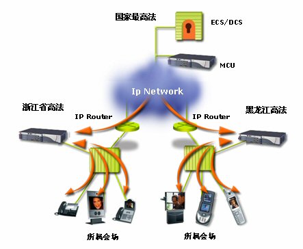 MCU視頻會議交互平臺,組成了由24臺RADVISION MCU實(shí)現(xiàn)的最高法院-22個(gè)省級法院-地(市)法院的3級視頻會議網(wǎng)絡(luò)。RADVISION建設(shè)的視頻會議系統(tǒng),既可以實(shí)現(xiàn)每個(gè)省單獨(dú)同時(shí)或分時(shí)靈活組建省—地(市)兩級視頻會議,也可以召開最高法院—22個(gè)省級法院—地(市)法院的3級視頻會議,并實(shí)現(xiàn)了最高法院對地(市)法院視頻會議終端的直接控制和管理。
