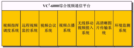 針對以上情況,北京華緯訊電信技術(shù)有限公司基于最新推出的VC3-6000綜合視頻通信平臺提出了針對性的"城市安保聯(lián)動視頻通信平臺"解決方案。該平臺整合多種資源,實現(xiàn)了視頻指揮調(diào)度、遠程視頻監(jiān)控、視頻會議、視頻點播、無線移動視頻接入、高清晰圖片傳輸和環(huán)境監(jiān)測等功能。平臺組成如下圖: