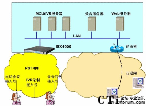 STOP SERVICE)平臺,是當(dāng)前和未來電信運營商(TCO)及虛擬服務(wù)提供商(SP/CP)增值業(yè)務(wù)規(guī)劃的最佳選擇,特別是中國重組后的3大運營商都具備全業(yè)務(wù)運營資格,正在規(guī)劃前所未有的全業(yè)務(wù)運營平臺(融合有線和無線、融合語音和數(shù)據(jù)、融合2G和3G、融和傳統(tǒng)PSTN和NGN網(wǎng)絡(luò)、融合電信網(wǎng)和互聯(lián)網(wǎng)),怎樣的設(shè)備才能問鼎和支撐這樣的全業(yè)務(wù)平臺?不妨仔細(xì)研究ISX4000的豪華單機和級聯(lián)配置:單機支持最大128E1(SS7、PRI)光電接口接入、4096路語音資源、4096路會議資源、多達6464路IP(G.711-6464路、G.729-2688路、G.723-2048路)、768路傳真資源、1280路FSK資源(用于E-POS)、1024路視頻資源。通過簡單易用的管理維護工具OAM可以對上述資源任意組合、動態(tài)配置、平滑升級。不僅如此,ISX4000本機同步配置的DSP采用高性能的回聲消除和音質(zhì)增強(EC