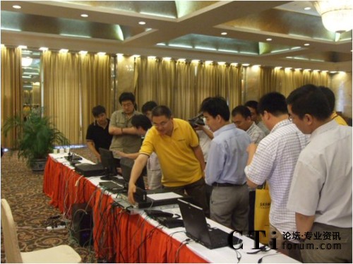 貫穿此次活動(dòng)的一大重頭——企業(yè)通訊現(xiàn)場(chǎng)演示。在本次活動(dòng)中,現(xiàn)場(chǎng)展示了企業(yè)會(huì)議系統(tǒng)、呼叫中心系統(tǒng),以及3G的體驗(yàn)平臺(tái)。演示是基于長(zhǎng)沙朗深的UniMedia中間件進(jìn)行的,此中間件為多媒體交換機(jī)系列產(chǎn)品提供了融合、開(kāi)放、靈活和高性能的多業(yè)務(wù)承載平臺(tái)。