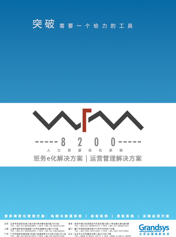 Grandsys 有最堅(jiān)強(qiáng)的設(shè)計(jì)研發(fā)團(tuán)隊(duì),以16年豐富的行業(yè)知識(shí)為基礎(chǔ),發(fā)展自有品牌應(yīng)用軟件與專業(yè)服務(wù)事業(yè),盛大推出LOG8000KS錄音與關(guān)鍵詞辨識(shí)分析系統(tǒng)、QMS8100KS質(zhì)檢與關(guān)鍵詞辨識(shí)分析系統(tǒng)、WFM8200人力資源優(yōu)化管理系統(tǒng)、和eVoice8300電話營銷與客戶服務(wù)系統(tǒng),為企業(yè)打造完整的呼叫中心管理平臺(tái)。
