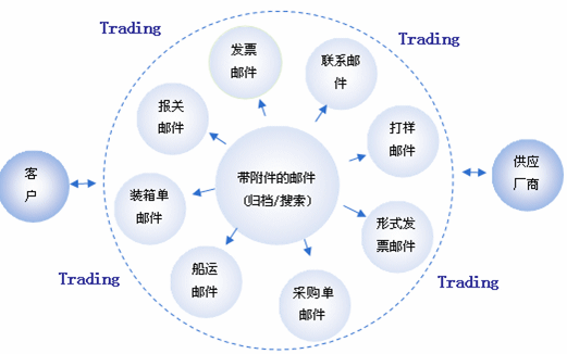 郵件是貿(mào)易中不可缺少的技術(shù)工具,郵件系統(tǒng)提供郵件的收發(fā)和管理,但是它并沒有提供和線索、活動、客戶、供應商、訂單集成的功能。Trading