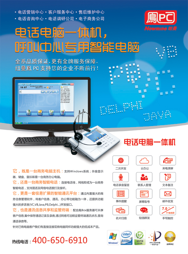 北京紐曼偉業(yè)科技有限公司坐落于中關(guān)村科技園區(qū),一直致力于電話語音系列產(chǎn)品(DRS數(shù)碼錄音系統(tǒng)和CTI聲訊服務(wù)系統(tǒng))的研制與開發(fā),利用國(guó)內(nèi)外最新的軟硬件技術(shù)平臺(tái)及自主開發(fā)生產(chǎn)電話語音卡的優(yōu)勢(shì),成功地推出了一系列電話語音產(chǎn)品:數(shù)碼錄音系統(tǒng)、企業(yè)客服中心、智能交換機(jī)、語音信箱、110/122接警處理系統(tǒng)以及智能對(duì)講系統(tǒng)等,大量應(yīng)用于電力、尋呼、銀行、公安、鐵路和保險(xiǎn)等諸多領(lǐng)域。