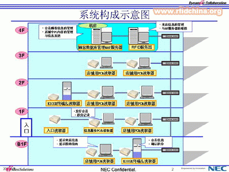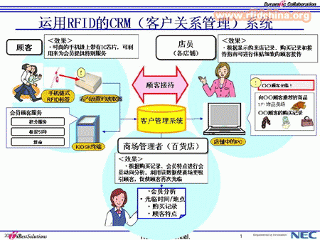 “上海婦女用品商店”B館,是以高雅的購物方式吸引顧客廣泛關(guān)注的,此外,倍受業(yè)界關(guān)注的是其在裝修之際,與NEC共同引進(jìn)了國內(nèi)首個運(yùn)用電子標(biāo)簽(RFID)技術(shù)的客戶關(guān)系管理(CRM)系統(tǒng)。今后在百貨商店經(jīng)營中所需的細(xì)致的顧客管理 。