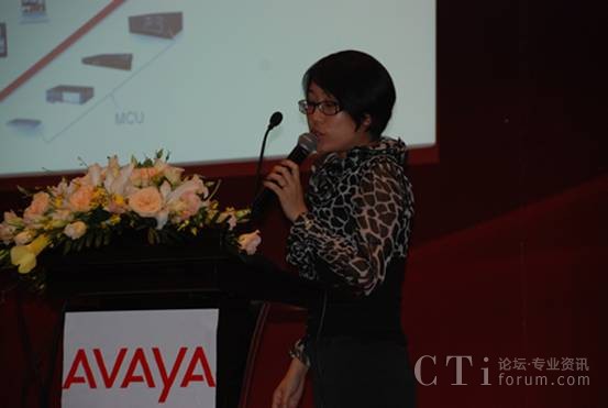 上圖為:Radvision市場(chǎng)總監(jiān)高艷女士在做演講