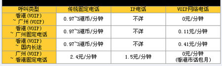 若香港與廣州兩地的終端計算機(jī)都同時安裝有VOIP的適配器,只需要通過Internet則可以實(shí)現(xiàn)免費(fèi)通話,而通過傳統(tǒng)的固定電話通話則每分鐘需要耗費(fèi)0.97~3的港幣;而香港通過VOIP播打廣州本地的固定電話,則需要廣州本地的VOIP計算機(jī)再飛線到所需播打的號碼上,簡單地說就是通過廣州本地的VOIP適配器利用廣州本地的固話線路播打香港所需接通的廣州號碼,從而實(shí)現(xiàn)長途電話本地化,費(fèi)用僅僅是廣州本地固話所需的話費(fèi)每分鐘0.11元,而通過傳統(tǒng)的固定電話通話則每分鐘需要耗費(fèi)0.97~3的港幣;而香港通過VOIP播打國內(nèi)的長途電話,其原理跟播打廣州本地普通電話完全一致,簡單地說就是通過廣州本地的VOIP適配器利用廣州本地的固話線路播打香港所需接通的國內(nèi)長途號碼,費(fèi)用僅僅是廣州本地固話播打國內(nèi)長途所需的話費(fèi)每分鐘0.41元,而通過傳統(tǒng)的固定電話通話則每分鐘需要耗費(fèi)0.97~3的港幣;而相反過來廣州本地通過VOIP播打香港電話原理也一樣,就是通過香港本地的VOIP適配器利用香港本地的固話線路播打廣州所需接通的香港電話,費(fèi)用方面,傳統(tǒng)的兩地固定電話都需要收取每分鐘2.4元的費(fèi)用,而通過IP電話卡也需要1.5元/分鐘的費(fèi)用,而通過VOIP網(wǎng)絡(luò)電話的方式則可以實(shí)現(xiàn)免費(fèi)通話,主要是由于香港本地的市話是包月的形式任打。