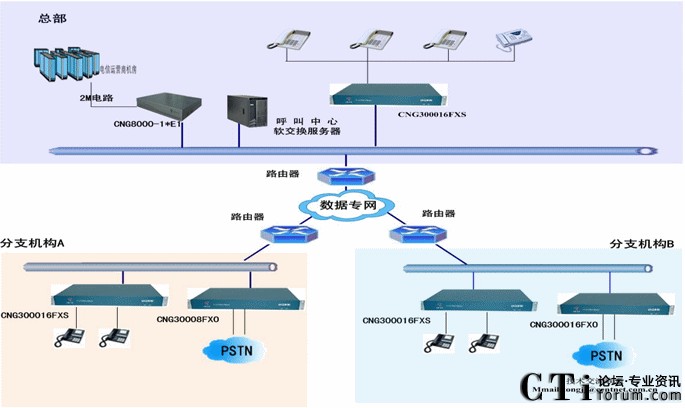 通常情況下座席必須安裝在呼叫中心平臺附近500米之內(nèi)的地方,在很多情況下,分布式的呼叫中心座席分布在各個城市。因此需要為呼叫中心平臺提供遠(yuǎn)程的呼叫中心座席人員。本方案主要描述的是模擬語音網(wǎng)關(guān)在呼叫中心的應(yīng)用。