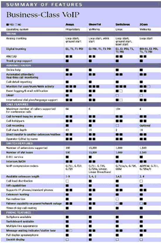 附:第三方測評。美國著名計算機雜志《PC Magazine》在2005年第11期發(fā)表了其對當前流行的企業(yè)級VoIP電話系統(tǒng)第三方測評結果,以下是原文掃描摘錄: