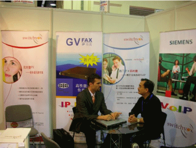 美國訊時(shí)捷科技公司作為IP-PBX專業(yè)提供商于2006年5月23-26日參加了最具權(quán)威的2006中國國際信息通信展覽會(huì),在上海光大會(huì)展中心的B019展位展示了Switchvox IPX與戰(zhàn)略合作伙伴Siemens配套IP終端話機(jī)。此次展會(huì),我們還推出了企業(yè)級(jí)新一代的IP傳真服務(wù)器GV-FAX,此次大會(huì)吸引了眾多全國的渠道代表、廠商、集成商和媒體參加,對(duì)產(chǎn)品感興趣的來賓絡(luò)繹不絕。