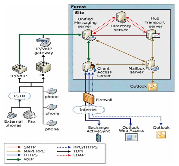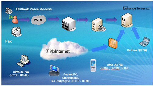 客戶端可以通過Outlook,Web,固話語(yǔ)音和手機(jī)接入,查看相關(guān)的郵件以及日程安排等信息。如下圖: