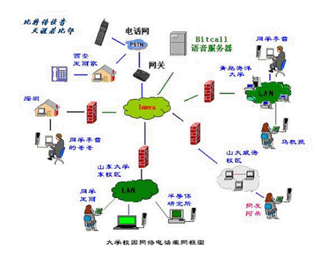 IPCall網絡電話語音服務器及用戶接入圖例: