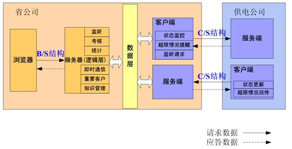 客服監(jiān)管系統(tǒng)中省級公司部分通過接口層與供電公司的客戶服務(wù)系統(tǒng)交換數(shù)據(jù)。通過業(yè)務(wù)邏輯層對接收到的數(shù)據(jù)進(jìn)行處理、展現(xiàn),并且處理要發(fā)送的數(shù)據(jù),在此實(shí)現(xiàn)所有的業(yè)務(wù)邏輯。供電公司部分負(fù)責(zé)提供歷史的和當(dāng)天的各種業(yè)務(wù)數(shù)據(jù)。整個(gè)結(jié)構(gòu)中也考慮到了數(shù)據(jù)中心,數(shù)據(jù)中心建立后將定期導(dǎo)入各供電公司客戶服務(wù)系統(tǒng)的歷史數(shù)據(jù),并提供給省級公司包括監(jiān)管系統(tǒng)在內(nèi)的各種應(yīng)用系統(tǒng)使用。
