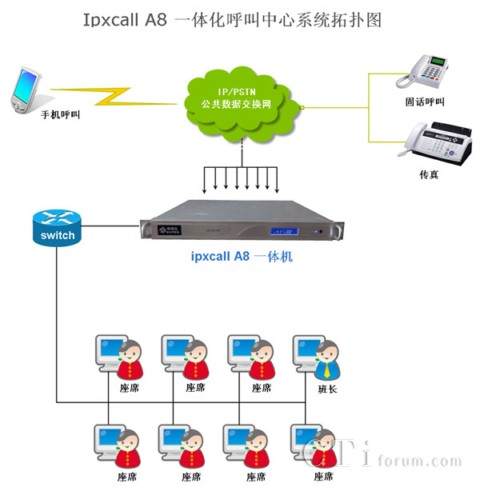 ipxcall A8呼叫中心融合IP-PBX和傳統(tǒng)呼叫中心功能于一體,采用先進(jìn)的計(jì)算機(jī)電話集成技術(shù),結(jié)合客戶的當(dāng)前業(yè)務(wù)和未來業(yè)務(wù)發(fā)展的實(shí)際情況,協(xié)助用戶快速建立一個(gè)功能全、易使用、易維護(hù)的一體化呼叫中心。