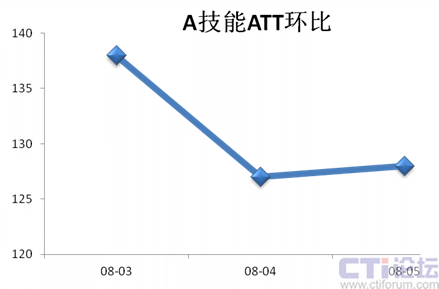 我們選擇話術(shù)簡單的“A技能”來分析,分別取3~5月的A技能ATT統(tǒng)計(jì)數(shù)據(jù)進(jìn)行環(huán)比(如下圖2):