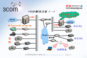 IP電話作為一種新技術(shù),確實令人振奮。它是對傳統(tǒng)電話交換技術(shù)的一次變革:不僅節(jié)省了企業(yè)長途通信成本,這還為遠程用戶提供對總部的數(shù)據(jù)網(wǎng)絡(luò)、通話系統(tǒng)和信息傳輸服務(wù)相同的接入能力,同時使運行維護方面變的更加快捷、簡便。3COM