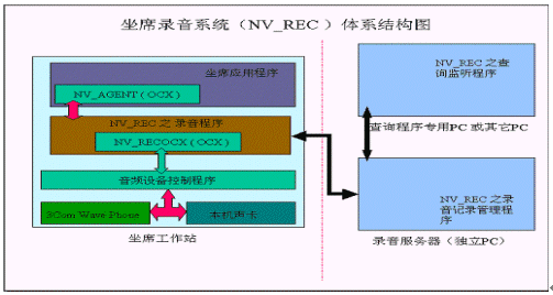 NV-REC 專用錄音系統(tǒng)與傳統(tǒng)的使用錄音板卡對坐席(電話)并線錄音的方式截然不同,由于3Com IPCC的所有坐席服務(wù)均是通過安裝在坐席終端上的軟件電話,通過聲卡、耳機來實現(xiàn)與客戶的電話溝通的。我們是直接監(jiān)測軟件電話,從聲卡設(shè)備通道中直接形成實時語音通話的標(biāo)準(zhǔn)WAV文件,從而完成對坐席的全程錄音功能。
