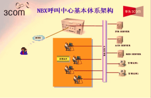 - 華為-3Com NBX采用數(shù)據(jù)包交換技術(shù),實(shí)現(xiàn)了語音與數(shù)據(jù)的融合。NBX呼叫中心系統(tǒng)平臺(tái)可以為客戶服務(wù)人員提供軟件和硬件的IP電話終端,用戶只需將坐席PC或IP話機(jī)接到桌面網(wǎng)口即可,無須重新部署語音線路,同時(shí)利用語音與數(shù)據(jù)融合的技術(shù)使得客服中心實(shí)現(xiàn)了統(tǒng)一的通信網(wǎng)絡(luò),減少的2套布線的繁瑣,大大降低了系統(tǒng)的維護(hù)及管理的工作量。