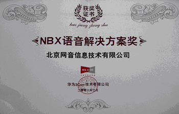 北京網(wǎng)音信息技術(shù)有限公司在2006年度華為-3Com公司渠道峰會上榮獲"IP語音解決方案獎"。