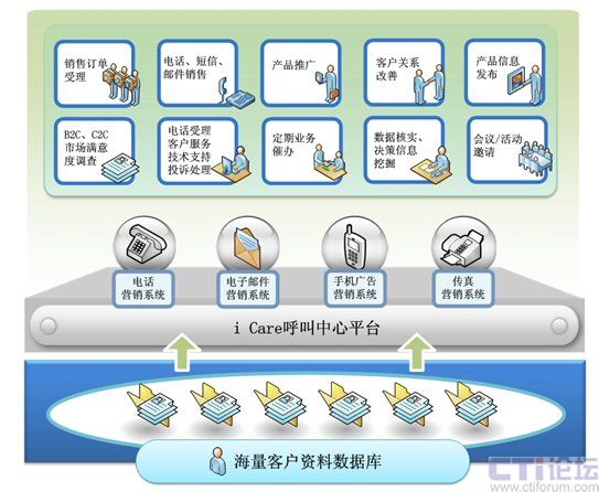依托先進(jìn)CTI技術(shù),基于現(xiàn)代服務(wù)營銷理念,系統(tǒng)實現(xiàn)銷售線索挖掘、電話銷售跟蹤、銷售機會孵化、市場機會勘察、B2B/B2C市場調(diào)查、會議邀請、客戶關(guān)系改善、定期業(yè)務(wù)催辦等多種電話營銷服務(wù)。