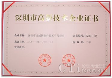 迪威通過“深圳市高新技術(shù)企業(yè)認(rèn)定”