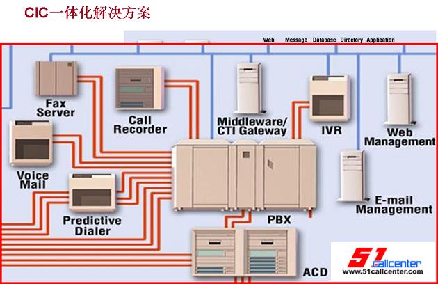 我給我們的產(chǎn)品做一個(gè)定位,就是一體化解決方案的呼叫中心。傳統(tǒng)的基于PBX的呼叫中心解決方案,我們把中間的這一塊放大,有傳真系統(tǒng)、語音信箱、IVR、Recorder記錄系統(tǒng)、還有預(yù)測(cè)外呼系統(tǒng)。每個(gè)系統(tǒng),都是獨(dú)立的,而且需要自己的服務(wù)器、自己的應(yīng)用軟件以及業(yè)務(wù)模式。我們的CIC解決方案,把這些所有的功能全部濃縮在一個(gè)服務(wù)器之內(nèi),也可以把它濃縮在一個(gè)Webex內(nèi),一個(gè)盒子之內(nèi),這個(gè)盒子就是我們的CIC。