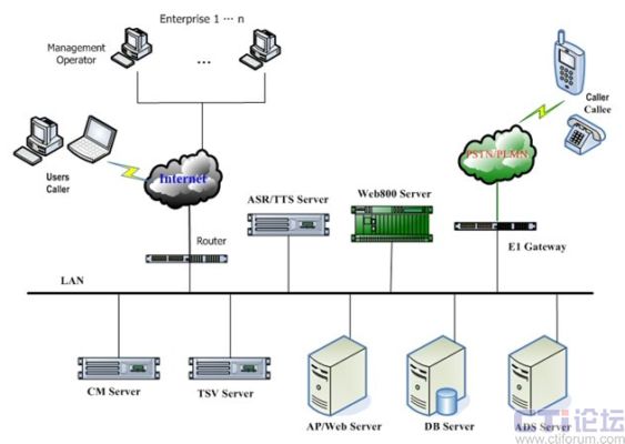 基于IP網(wǎng)絡(luò)的優(yōu)點(diǎn),同樣也是系統(tǒng)更能滿足不同用戶的需求。系統(tǒng)的所有組成部分,均是采用分布式設(shè)計(jì)。座席可以在分布的,語音交互、呼叫管理等也都是可以分布的,部署在不同的網(wǎng)絡(luò)內(nèi),最大程度的根據(jù)企業(yè)的資源配置來量身定做。