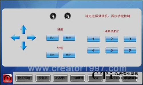 CTI論壇(ctiforum)1月25日消息(記者 潘婷):在業(yè)務(wù)不斷攀升的同時(shí),廣東移動公司對培訓(xùn)直播室也進(jìn)行了進(jìn)一步的提升,采用了CREATOR快捷的中控系統(tǒng)和矩陣系列產(chǎn)品,其中,中控設(shè)備是CREATOR快捷PGMII型高端中央控制可編程主機(jī),通過無線真彩觸摸屏ST-7600C作為控制媒介,主要控制了矩陣、投影機(jī)、DVD、攝像機(jī)等外圍設(shè)備,對整個(gè)會議室實(shí)現(xiàn)有線全智能人性化控制。通過對矩陣進(jìn)行控制切換信道,實(shí)現(xiàn)了多個(gè)電腦會議信號的快速轉(zhuǎn)換和AV信號的切換。矩陣采用了8*4的RGB矩陣和8*4的AV矩陣,可以方便的對電腦信號和AV信號進(jìn)行簡單的切換。通過紅外發(fā)射棒對DVD和攝像機(jī)進(jìn)行控制,體現(xiàn)了多媒體控制系統(tǒng)的優(yōu)越性,本系統(tǒng)還通過攝像跟蹤的原理來實(shí)現(xiàn)教室直播的錄制。