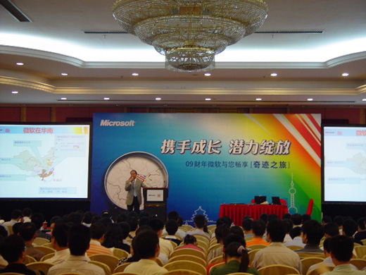 9月5日,微軟2009財(cái)年奇跡之旅廣州站活動(dòng)在亞洲國(guó)際大酒店亞洲廳隆重的舉行。本次活動(dòng)邀請(qǐng)到約計(jì)四百多位客戶(hù)參加,遍及金融、電力、專(zhuān)業(yè)服務(wù)、制造、醫(yī)藥、物流,等各行業(yè)。