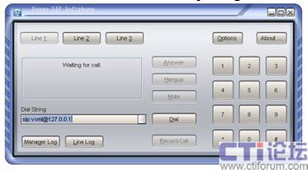 最后,交卷的時(shí)刻到了,我們的應(yīng)用到底能不能用呢?讓我們來測試一下。打開Prophecy自帶的SIP Phone,如圖4所示,給sip:vxml@127.0.0.1撥號。當(dāng)我們聽到揚(yáng)聲器傳來“Welcome