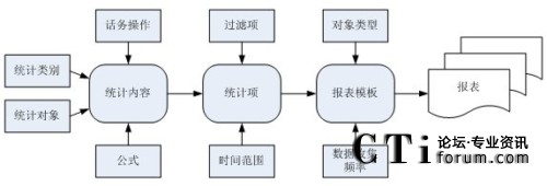 然而,在現(xiàn)代呼叫中心尤其是大型的呼叫中心中,數(shù)據(jù)量是巨大的,且形式也各種各樣。要想把報(bào)表模板劃分成規(guī)范而整體可以覆蓋全面的子單元,就需要對(duì)呼叫中心中報(bào)表統(tǒng)計(jì)數(shù)據(jù)的規(guī)律性進(jìn)行研究。不過(guò)呼叫中心中的報(bào)表數(shù)據(jù)劃分也不是孤立的,而是相互之間存在著一定的適用條件聯(lián)系。報(bào)表數(shù)據(jù)統(tǒng)計(jì)都應(yīng)該表現(xiàn)出研究對(duì)象的本質(zhì)屬性:服務(wù)的對(duì)象、基本內(nèi)容、實(shí)現(xiàn)的功能等。