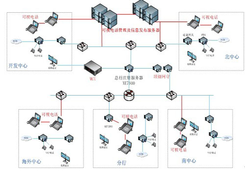 與原有的系統(tǒng)兼容,保持原有的撥號規(guī)則,會議系統(tǒng)等,盡量少的改變原有系統(tǒng),實(shí)現(xiàn)總行與四大中心以及各個分行的可視化通信,并實(shí)現(xiàn)可視化的通訊錄、會議管理、消息通知等一系列增值業(yè)務(wù)功能。