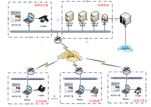 在方案的推進(jìn)過程中,我們?cè)诟鞔髸?huì)議室部署了CX3000、在桌面分別部署了CX600與IP331。通過這些終端的自身的優(yōu)勢(shì)及與系統(tǒng)的配合,實(shí)現(xiàn)了完整的電話體驗(yàn)、PSTN無縫結(jié)合、LYNC完整的企業(yè)級(jí)語音功能、 高清晰語音質(zhì)量 、專業(yè)的語音會(huì)議等用戶需求,F(xiàn)在此方案在鳳凰網(wǎng)的會(huì)議室及桌面的應(yīng)用效果良好,場(chǎng)景應(yīng)用圖如下: